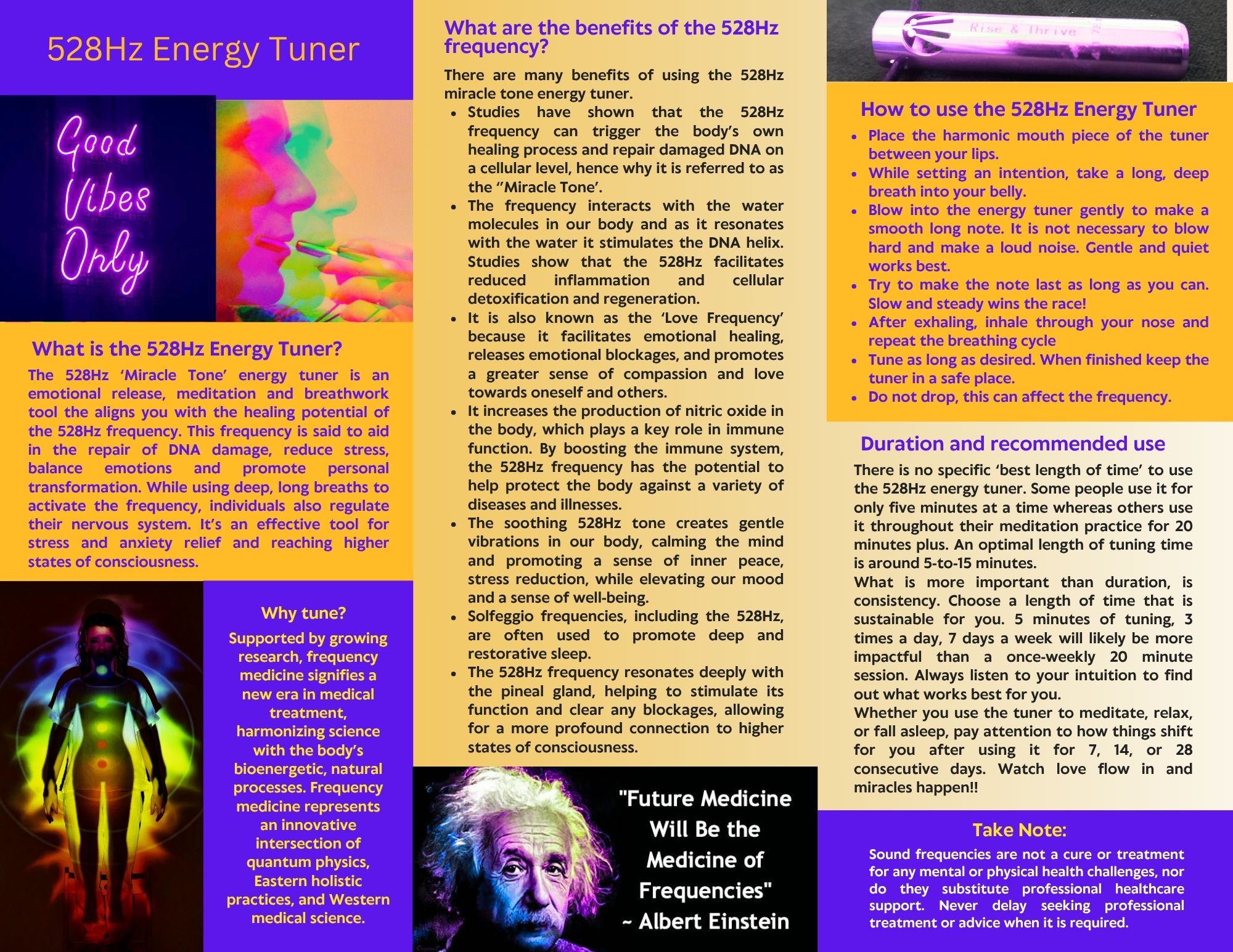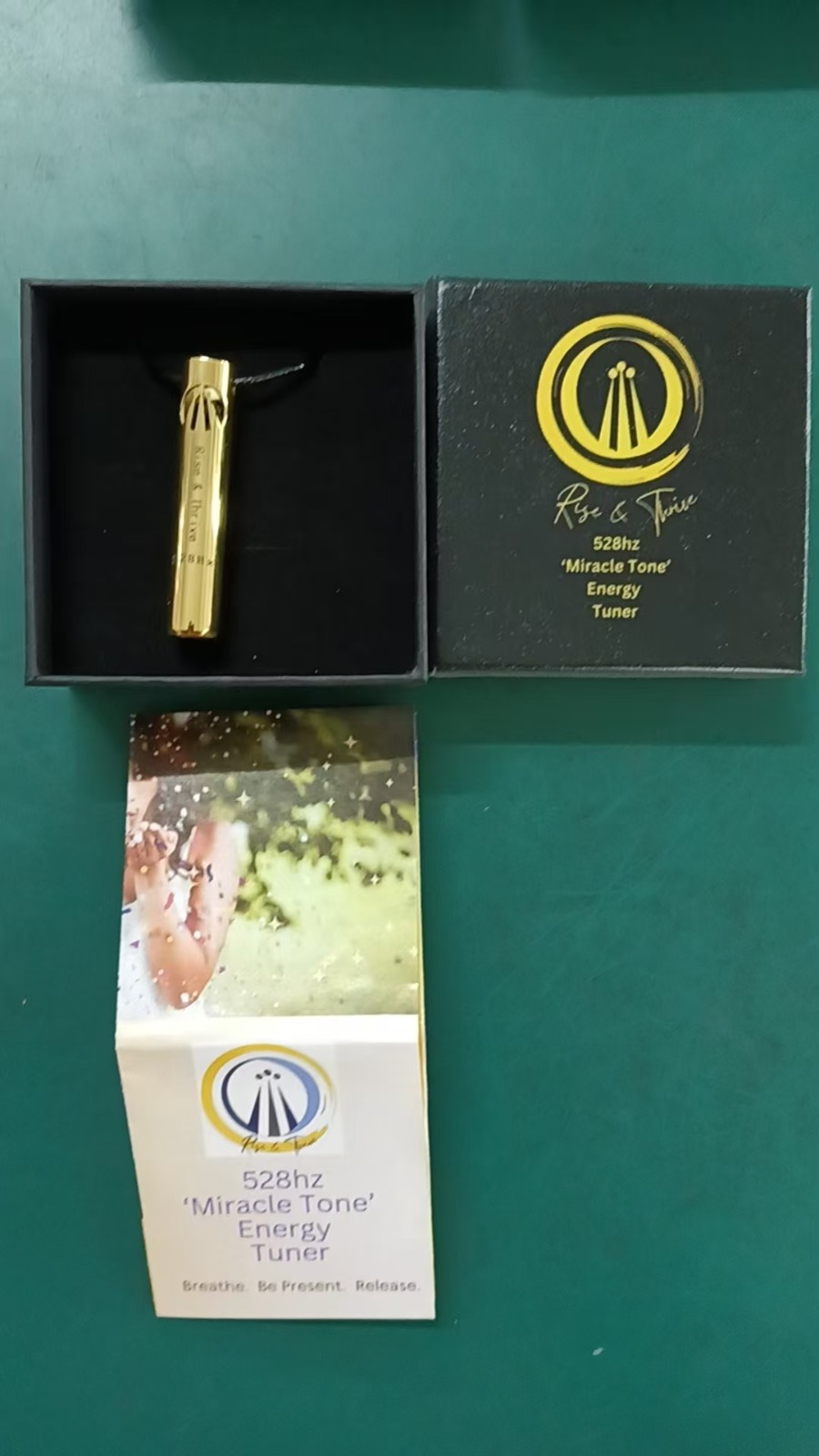 The 528Hz Miracle Tone energy tuner is an emotional release, meditation, mindfulness and breathwork tool that aligns you with the healing potential of the 528hz frequency. This frequency is said to repair DNA damage, reduce stress, balance emotions and aid in personal transformation. It is aligned with the solar plexus chakra.